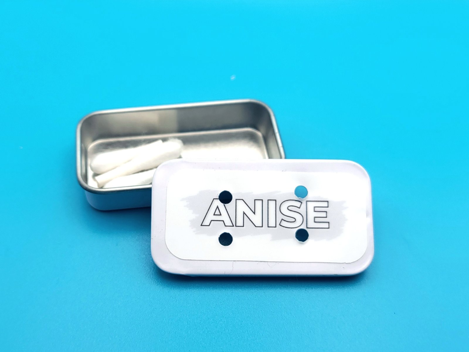 Labelled tins help you keep your odors organized and prevents you from mixing up target odor unintentionally. This permanent waterproof label reads “anise” on a white background and is available on a matte white, matte black, or plain (silver) tin. Each tin has 4 holes that are 1/8″ diameter.